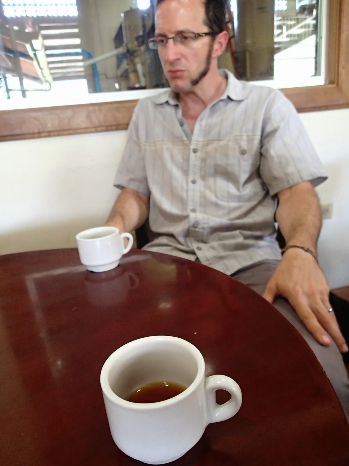 Chops enjoys his coffee cupping, we tasted a few different types from Cafe Ruiz at the end of the tour
